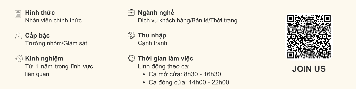 - Có tối thiểu 1 năm kinh nghiệm ở vị trí quản lý bán lẻ tương tự (ưu tiên ngành thời trang hoặc chuỗi bán lẻ)